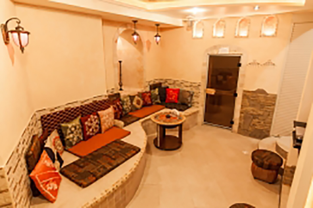 Вас ждет уютная, расслабляющая обстановка, влажный пар, мыльный массаж, пилинг "Кесе". На удобном подогреваемом мраморном подиуме, среди турецких подушек, Вы со своими друзьями сможете поговорить, выпить чай, насладиться ароматом кальяна.